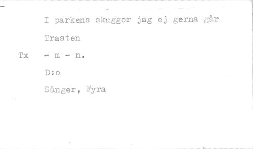 //// parkens skuggor jag ej gerna går Trasten //// Tx m - n. //// D:o //// Sånger, ]'yra ////