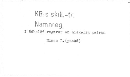 //// KB: s skall.-tr. //// Namnreg. //// I Råbelöf regerar en hiskelig patron //// Nisse L.(pseud) ////