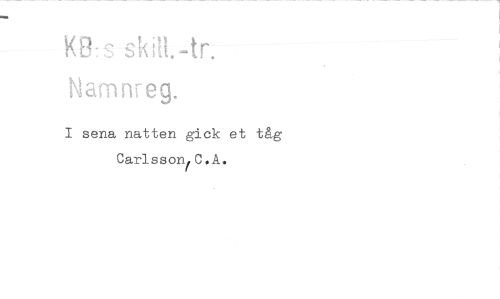 //// KE:S skill-tr. //// Namnreg. //// I sena natten gick et tåg //// CarlssonfO.A. ////