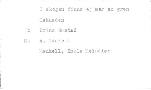 //// I skogen finns ej mer en gren Saknaden //// Tx Prins Gustaf //// Mk A. Manken //// Idankell, Enkla Melodier ////