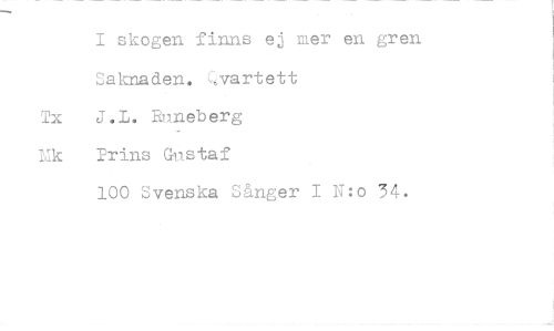 //// 1 skogen finns ej mer en gren Saknaden. (vartett //// Tx J.L. Runeberg //// Mk Prins Gustaf //// 100 Svenska Sånger 1 N:o 34. ////
