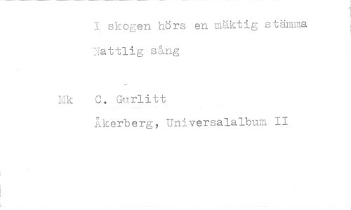 //// I skogen hörs en mäktig stämma Yattlig sång //// Mk 0. Gurlitt //// Åkerberg, Universalalbum II ////