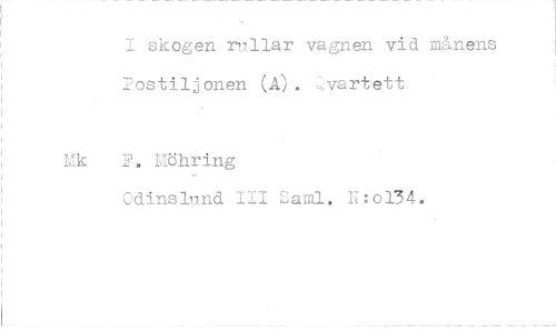 //// I skogen rullar vagnen vid månens Postiljonen (A). vartett //// Mk F. Möhring //// Odinslund III Saml. N:o134. ////