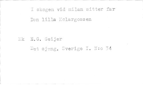 //// I skogen vid milan sitter far Den lilla Kolargossen //// nk E.G. Geijer //// Det sjung. Sverige I. N:o 34 ////