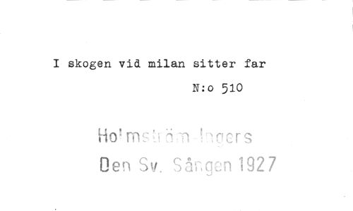 //// skogen vid milan sitter far //// N:o 510 //// Vmers //// Den Sv. Sången 192 7 ////