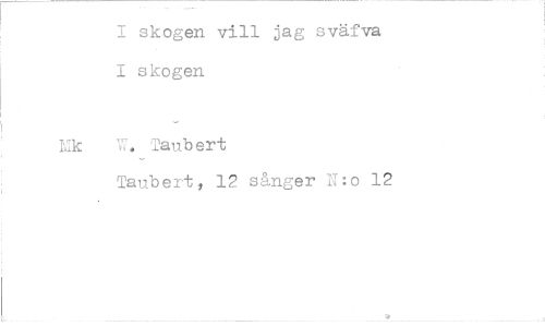 //// I skogen vill jag sväfva I skogen //// Lik W. Taub ert //// Taubert, 12 sånger N:o 12 ////