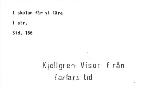 //// I skolan får vi lära 1 str. //// Sid. 166 //// Kiellgren: Visor ( rån //// farfars tid ////