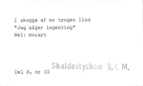 //// I skugga af en trogen lind "Jag säger ingenting" //// Mel: Mozart //// Del X, nr 10 Skaldestyck n S, 1. M, ////