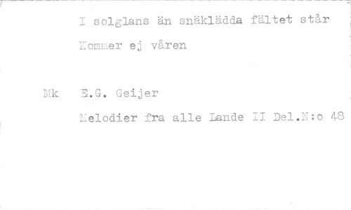//// I solglans än snäklädda fältet står Kommer ej våren //// mk E.G. Geijer //// Lelodier fra alle Lande II Del.U:o 48 ////
