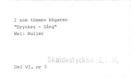//// I som tömmen bägaren "Dryckes - Sång" //// Mel: Muller //// 4„. , //// SKawestyckeci //// Del VI, nr 3 ////