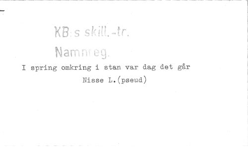 //// X13: s sk U, //// Narrir _. //// I spring omkring i stan var dag det går Nisse L.(pseud) ////