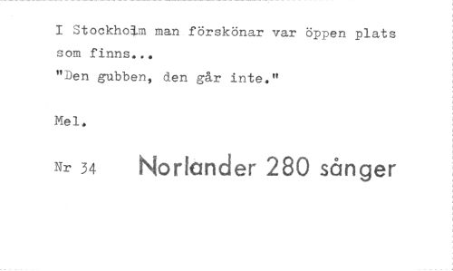 //// I Stockholm man förskönar var öppen plats som finns... //// "Den gubben, den går inte." //// Mel. //// Nr 34 horunder 280 sånger ////