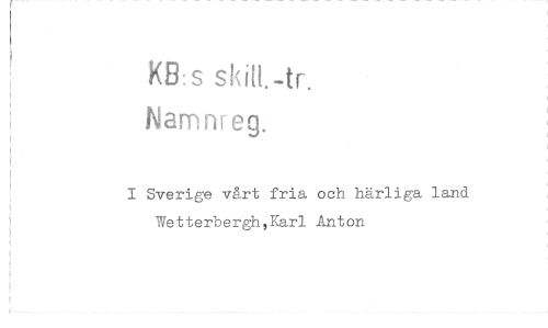 //// KB:s ska-tr. //// Namnreg. //// I Sverige vårt fria och härliga land Wetterberghjarl Anton ////