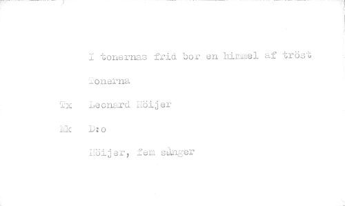 //// 1 tonernas frid bor en himmel af tröst 20nerna //// Tx Deonard höijer //// hk D:o //// höijer, fem sanger ////