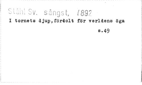 //// )‘Uhh Sv. sångst, 89'; //// I tornets djup, fördolt för verldens öga //// 8• 49 ////