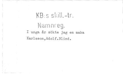 //// s //// Namnreg. //// I unga år sökte jag en maka Karlsson,Adolf.Blind. ////