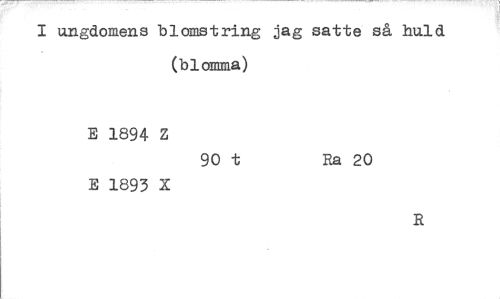 //// ungdomens blomstring jag satte så huld (blomma) //// E 1894 Z E 1893 X 90 t Ra 20 R ////