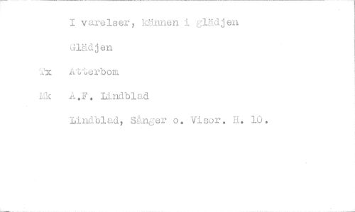 //// varelser, kännen i glädjen Glädjen //// 2x kiT,erbom //// A.F. Lindblad //// Lindblad, Sånger o. Visor. . 10. ////
