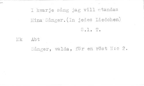 //// hvarje sång jag vill utandas //// Mina' Sånger. (In. jedes Liedohen) //// S.1. T. //// Mk Abt //// Sånger, valda, för en röst o 2. ////