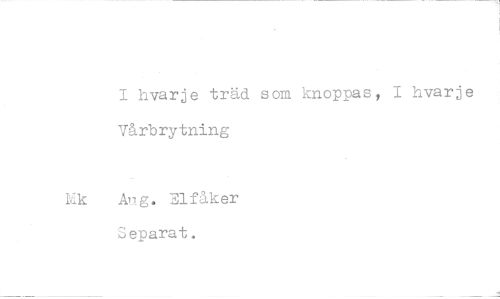 //// I hvarje träd som knoppas, I hvarje Vårbrytning //// Mk An g. Elfåker //// Separat. ////
