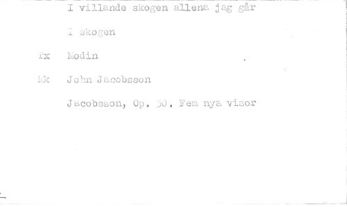 //// 1 villande skogen allena jag går i skogen //// '..Cx //// Lic John Jacobsson //// Jacobsson, Op. O. Fem nya visor ////