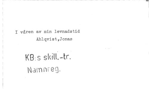 //// I våren av min levnadstid Ahlqvist,Jonas //// skilt..tr. //// Namiveg. ////