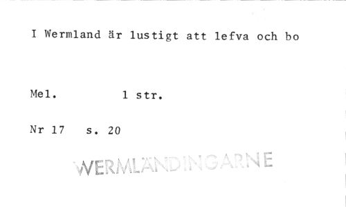 //// I Wermland är lustigt att lefva och bo //// Mel. 1 str. //// Nr 17 s. 20 ////