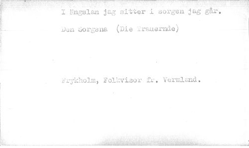 //// 1 ängslan jag sitter i sorgen jag går. Jon sorgsna (Die .rauernde) //// Frykholm, Folkvisor fr. Vermland. ////