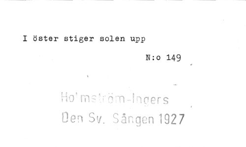 //// I öster stiger solen upp //// N:0 149 //// Ho ° m- icers //// Oen Sv. Sången 192 7 ////