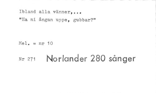 //// Ibland alla vänner,... //// "Ha ni ångan uppe, gubbar?" //// Mel. = nr 10 //// Nr 271 Norlander 280 sånger ////