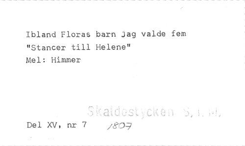 //// Ibland Floras barn Jag valde fem "Stancer till Helene" //// Mej: Himmer //// Del XV, nr 7 ////