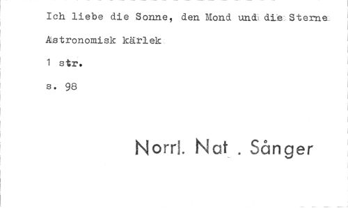 //// Ich liebe die Sonnej den Mond und dieSterne. Astronomisk kärlek //// 1 str. //// s. 98 //// Nord. Na Sånger ////