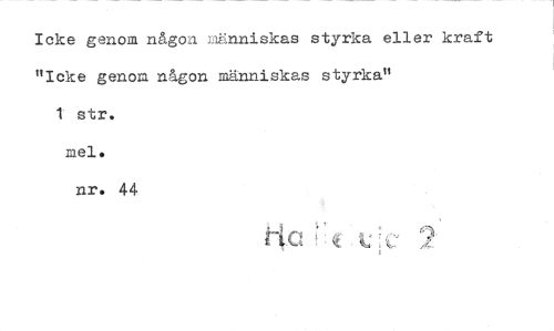 //// Icke genom någon människas styrka eller kraft "Icke genom någon människas styrka" //// 1 str. //// mel. //// nr. 44 //// Ho ( t ////