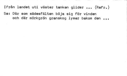//// Ifrån landet uti väster tanken glider ... (Refr.) //// Se: Där som sädesfälten böja sig för vinden //// och där mörkgrön granskog lyser bakom den ... ////
