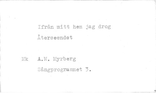 //// Ifrån mitt hem jag drog Äterseendet //// Mk A.M. Myrberg Sångprogrammet 3. ////
