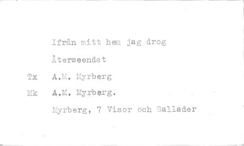 //// Ifrån mitt hem jag drog ,terseendet //// Tx A.K. Myrberg //// Mit A.M. Myrberg. //// Myrberg, 7 Visor och Sallader ////