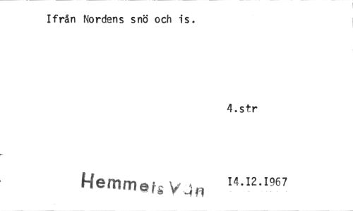 //// Ifrån Nordens snö och is. //// 4.str //// Remin e afl 14.12.1967 ////