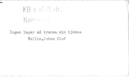 //// Ingen lager må kransa min hjässa //// Wallin,Johan Olof ////