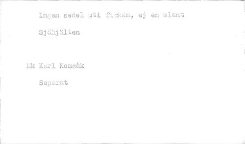 //// Ingen sedel uti fickan, ej en slant Sjöhjälten //// kik Karl Komzåk //// Separat ////