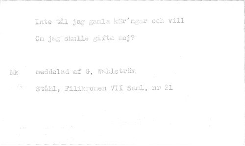 //// Inte tål jag ganla kr'ngar och vill Om jag skulle gifta mej? //// Lk meddelad af G. Wahlström //// FilikroLzen VII Sanl. nr 21 ////