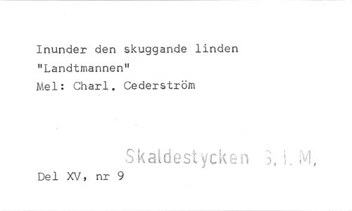 //// Inunder den skuggande linden "Landtmannen" //// Mel: Charl. Cederström //// Skaidestycken //// Del XV, nr 9 ////