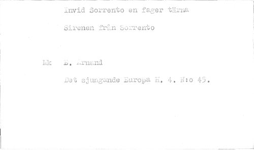 //// Invid Sorrento en fager tärna Sirenen från Sorrento //// Lk E. 4.rnand //// Dat sjungande Europa H. 4. Kto 45. ////