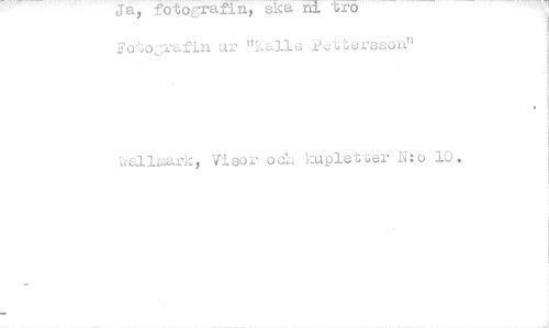 //// Ja, fotosrafin, ska ni Lro Fotojrafin ur "kalle Pettersson" //// 11warkl Visor ock kupletter N:o 10. ////