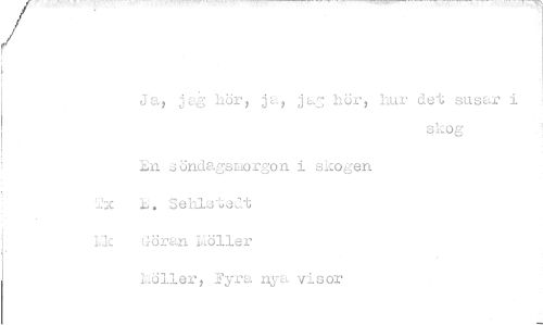 //// jag hör, jag ]adr, hur det susar i //// skog //// En söndagsmorgon i skogen //// 2x :E. SehisteJt Lk Göran zöller //// Möller, Fyra nya visor ////