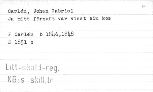 //// Garldn, Johan Gabriel //// Ja mitt förnuft var visst sin kos //// F Carlen b 1846,1848 1851 c //// litKskaid -reg, //// „skitt.tr ////