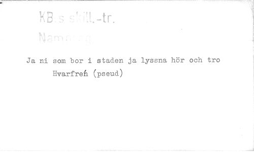 //// Ja ni som bor i staden ja lyssna hör och tro Evarfrefi (pseud) ////