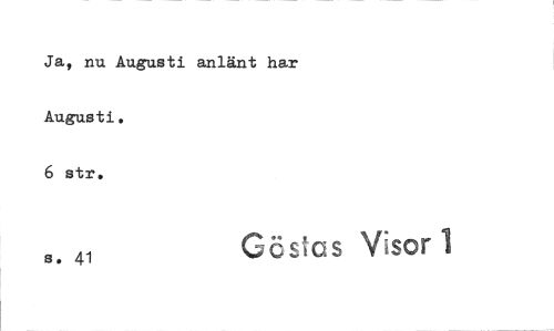 //// Ja, nu Augusti anlänt har Augusti. //// 6 str. //// s. 41 Göstas Visor 1 ////