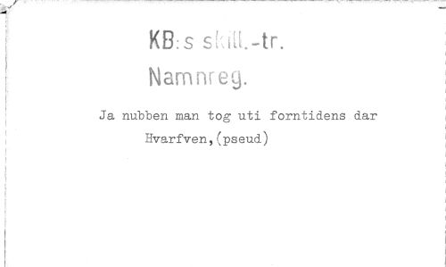 //// KB: s //// Narnnreg. //// Ja nubben man tog uti forntidens dar Hvarfven,(pseud) ////