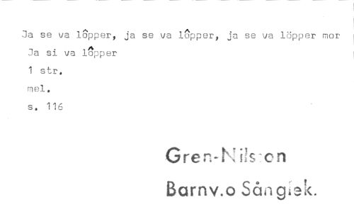 //// Ja se va löpper, ja se va löpper, Ja si va löpper ja se va löpper mor //// 1 str. //// mel. //// s. 116 //// Gren-NN-en //// Barnv.o Sån gk. ////