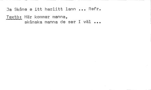 //// Ja Skåne e itt harlitt lann Refr. //// Textb: Här kommer manna, //// skånska manna de ser I väl ////